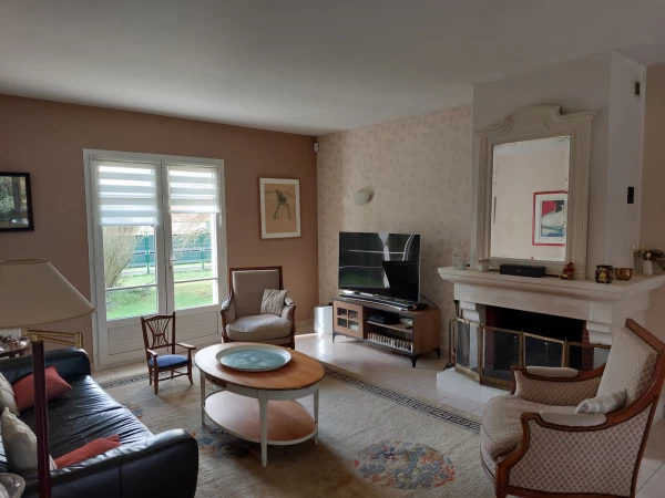 Un très beau salon séjour avec cheminée, permet de profiter de toutes et tous, dans une ambiance chaleureuse.